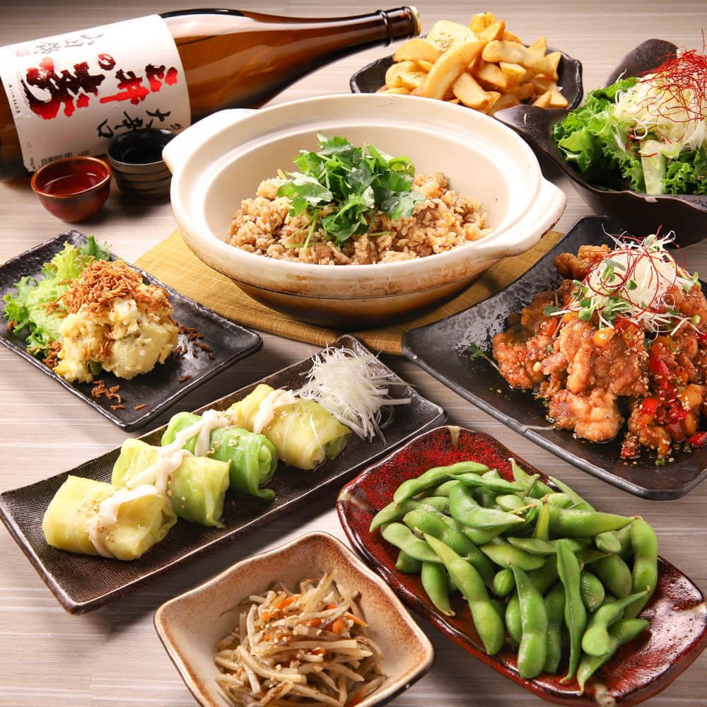 若鶏炙り焼きやちらし寿司含む全8品『笑-emi-コース』2時間飲み放題付き4,500円→3,500円